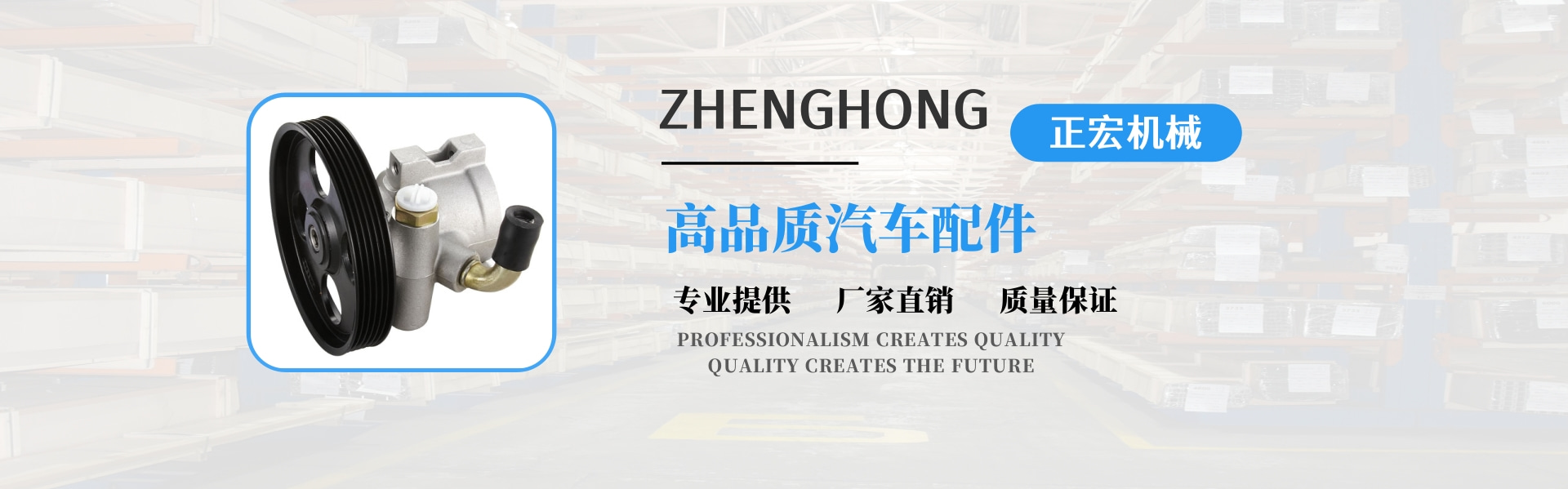 正宏機械有限公司成立于2004年,是一家新興的技術型企業,專業生產動力轉向泵。我們是一家集設計、生產、貿易于一體的專業公司,同時享有進出口權?! 」咀猿闪⒁詠?,堅持以技術為導向,以高起點為原點;把產品創新和質量管理放在首位。擁有國內先進的汽車動力轉向泵專業生產設備和檢測設備。憑借經驗豐富的技術團隊,我們已經設計了20多個系列,近數百個動力轉向泵。年產10萬臺。產品深受廣大客戶的信賴和好評,得到了廣大客戶的認可。